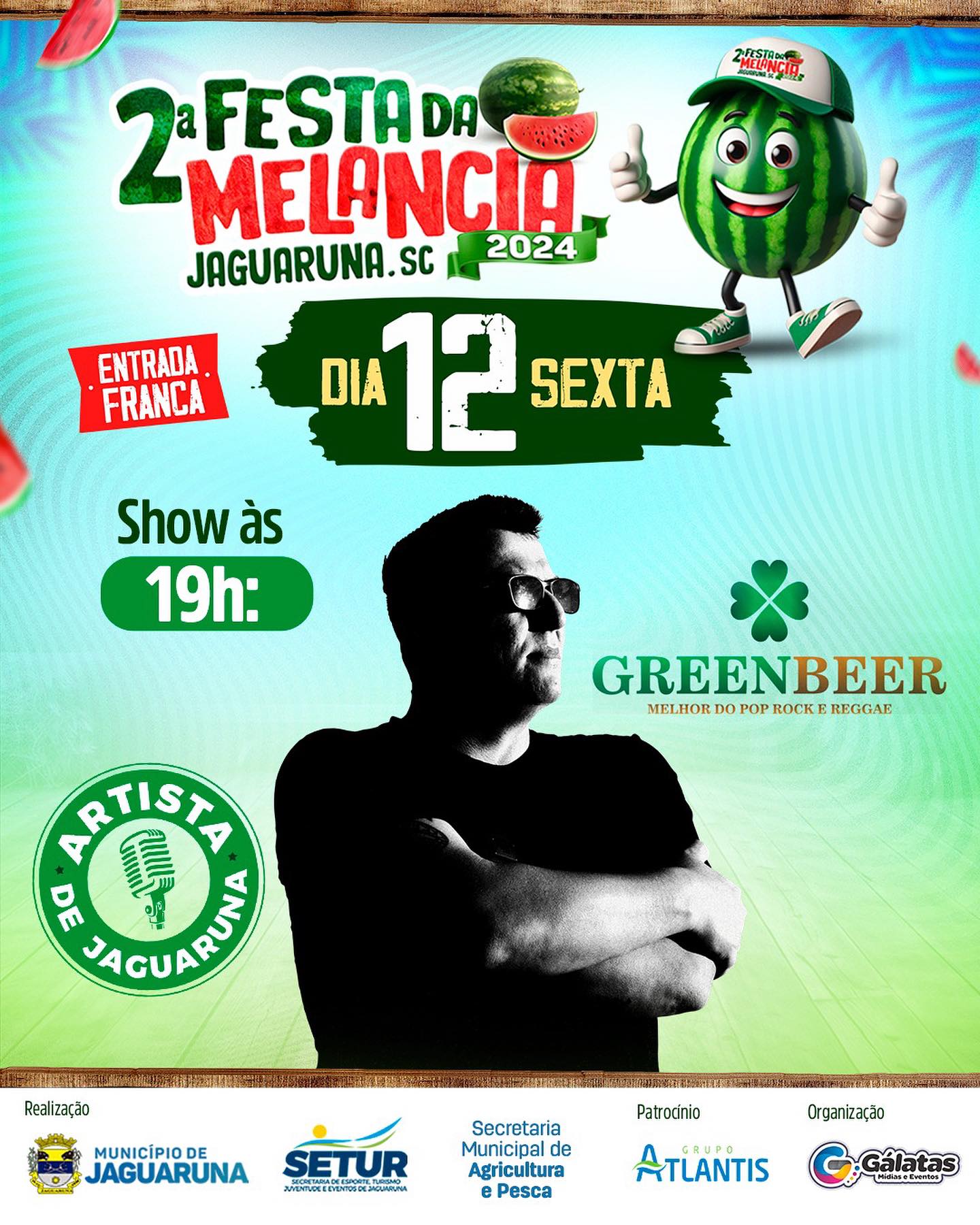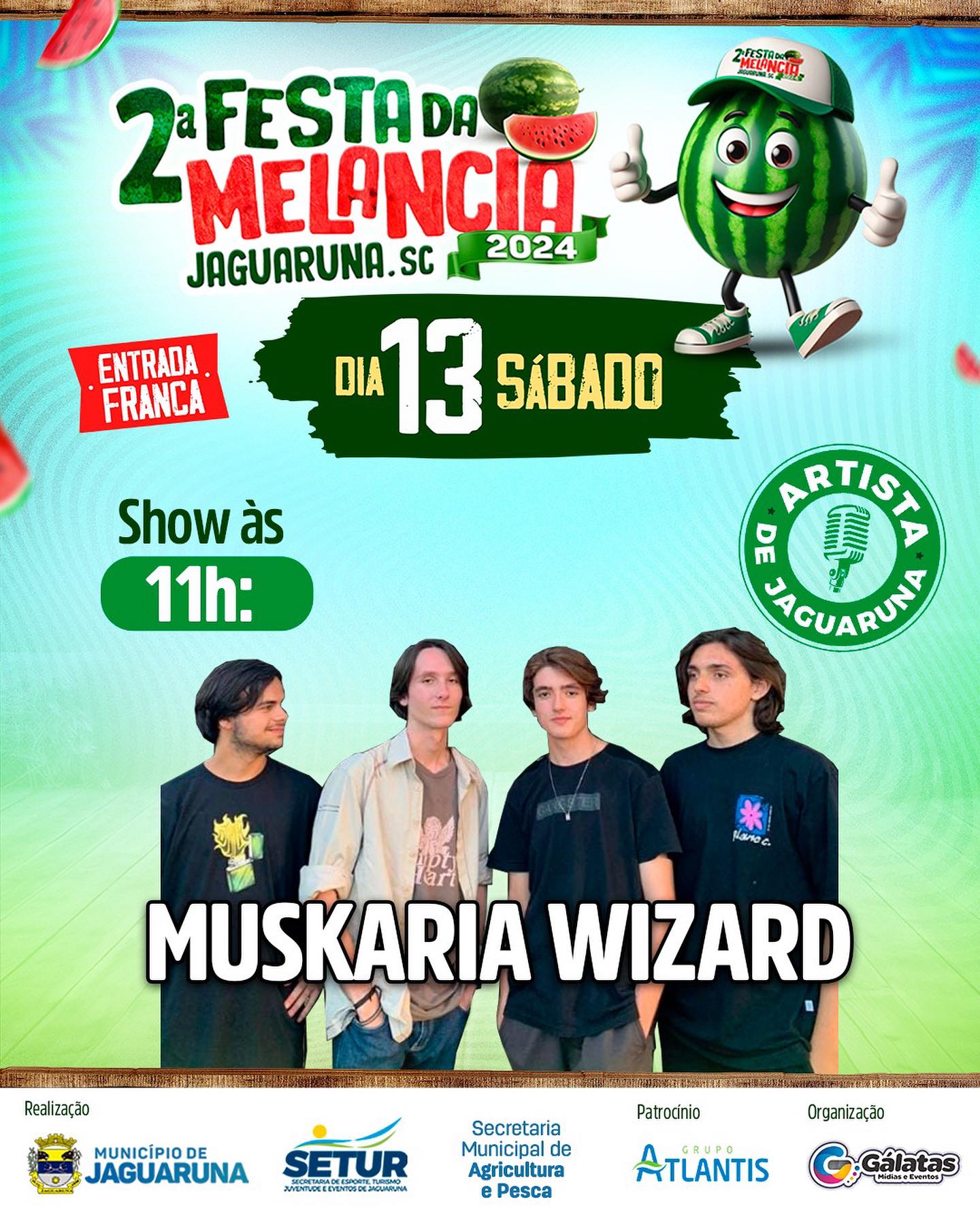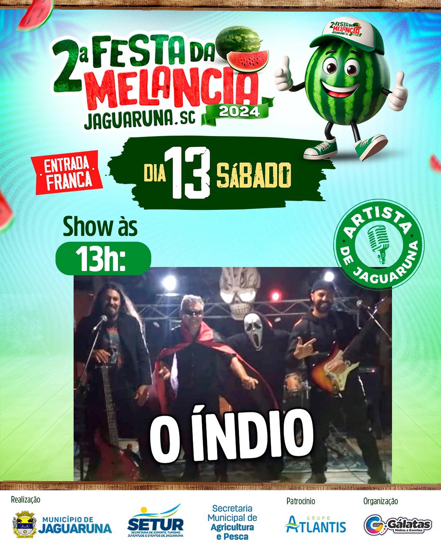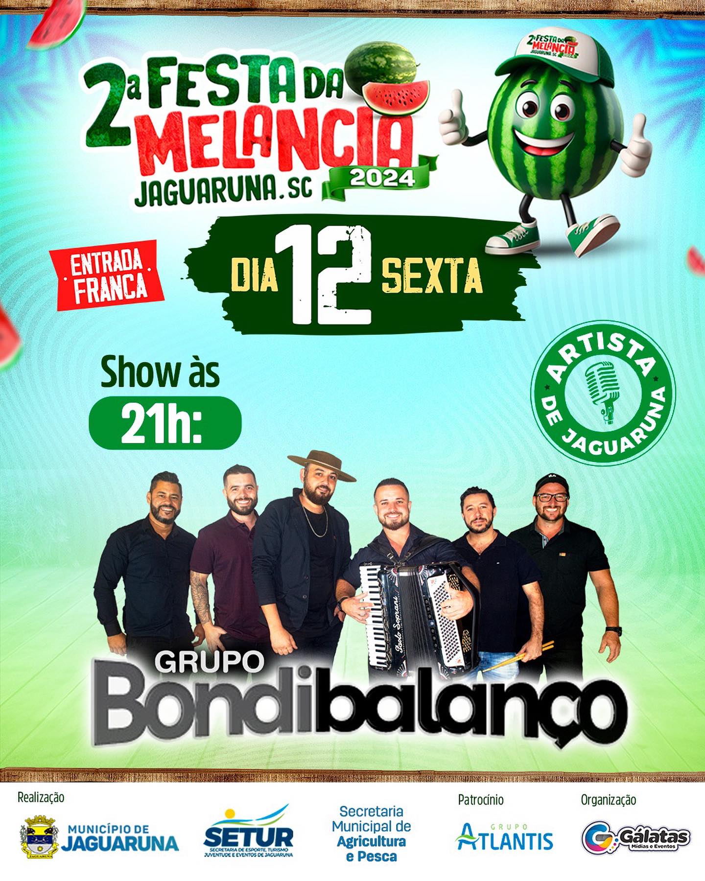 Temos a honra de receber na 2ª FESTA DA MELANCIA diversos artistas locais que irão trazer muita música de qualidade para o evento que leva a essência de Jaguaruna.