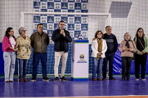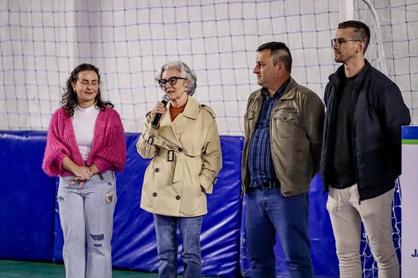 Na última sexta-feira, dia 1º de agosto, o Ginásio de Esportes Nikanor Valmor Stork foi palco da abertura oficial do Campeonato Interbairros de Futsal, edição que leva o nome da Taça Vanderlei Merginio dos Santos em homenagem a esse importante nome do nosso município. Tivemos a honra de contar com a presença de seus familiares, além do prefeito Laerte Silva, que prestigiou a competição.