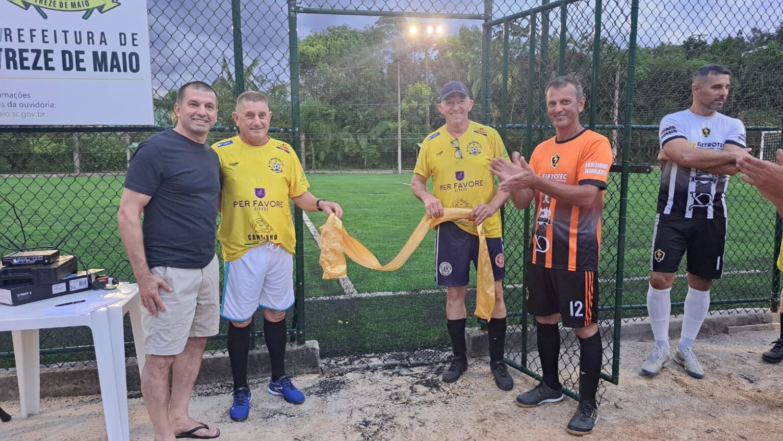 Na última quinta-feira (16), a Prefeitura de Treze de Maio realizou a reinauguração do Campo Society do Complexo Esportivo Irineu Bornhausen, um importante espaço de lazer, esporte e convivência para a comunidade. A solenidade contou com a presença de autoridades municipais e de moradores que prestigiaram o momento de entrega da obra.