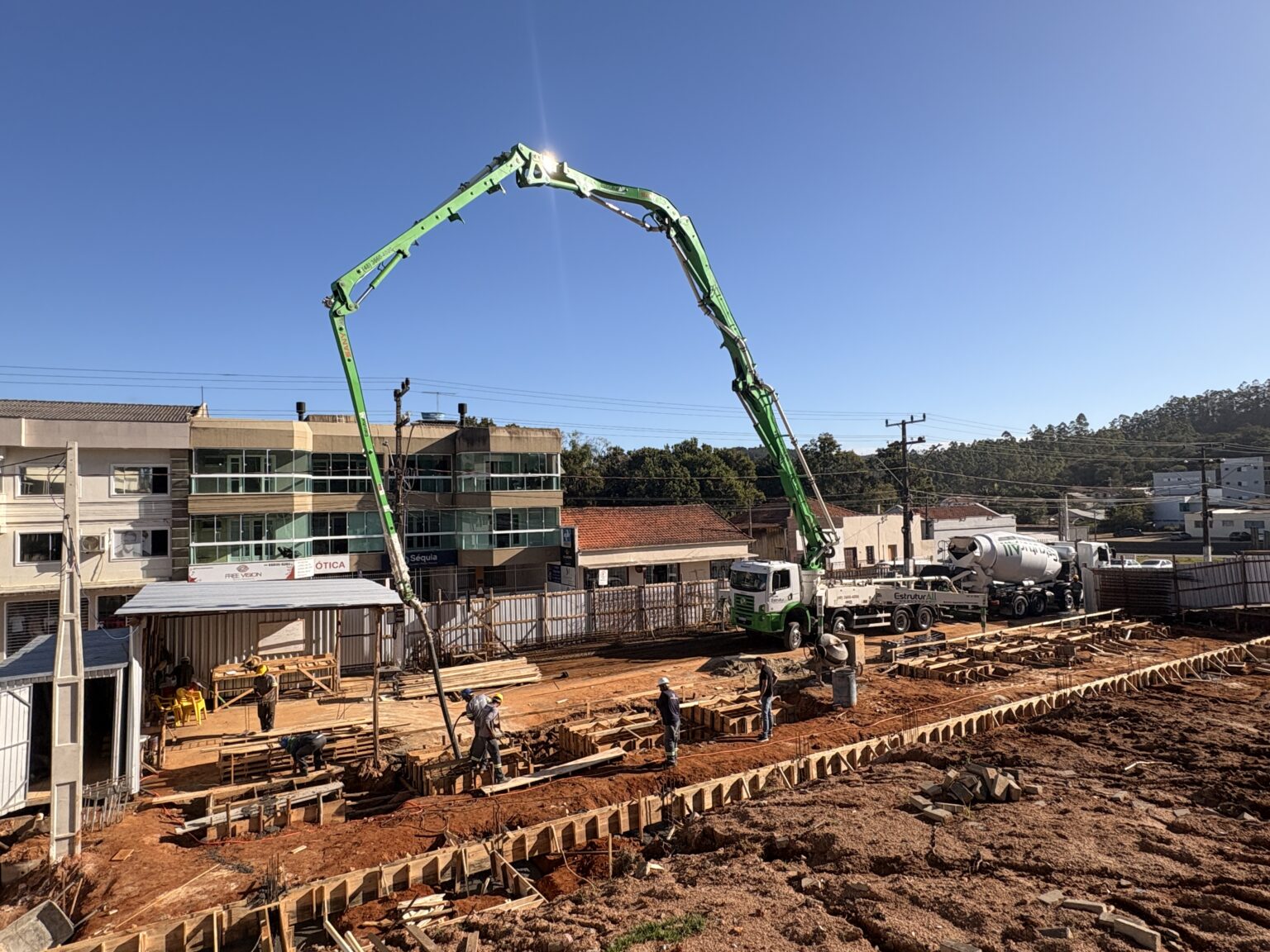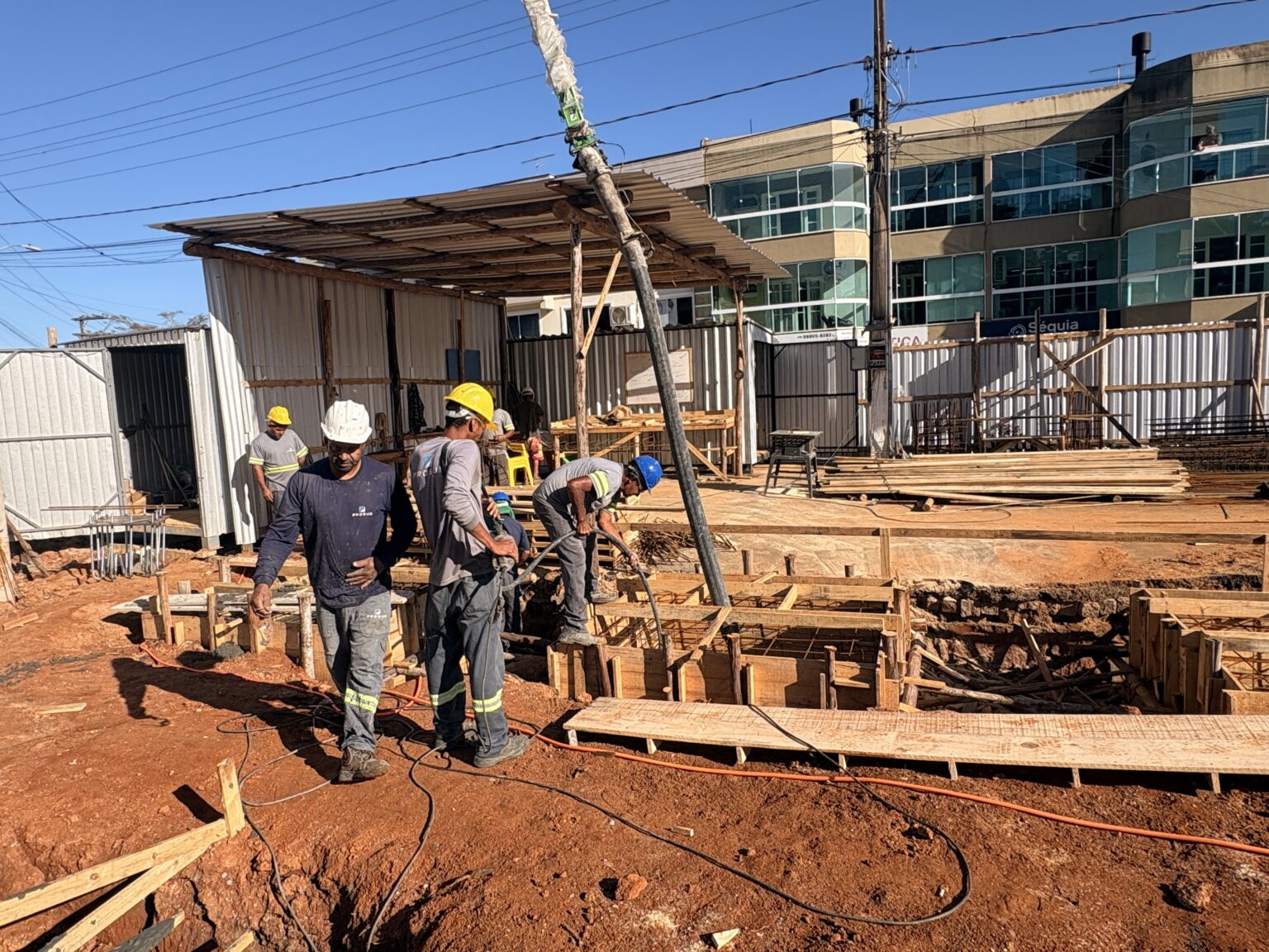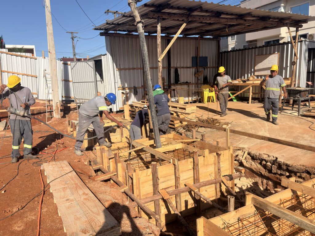 As obras da Rua Coberta Nilton Crozetta, localizada na Avenida 7 de Setembro, em frente à Praça Municipal Auricélia Maria Lemos Ghisi, seguem em ritmo acelerado e já apresentam avanços significativos. Na manhã desta sexta-feira (10), foi realizada a etapa de concretagem da base que dará sustentação à estrutura.
