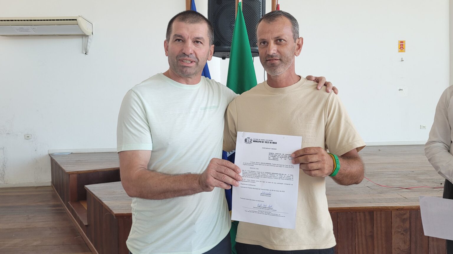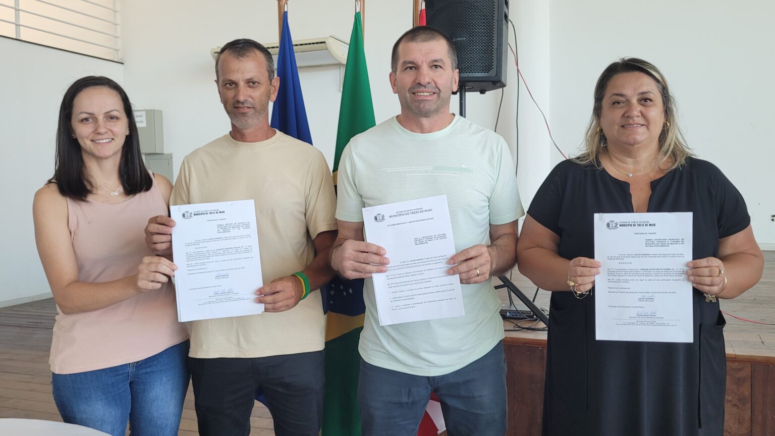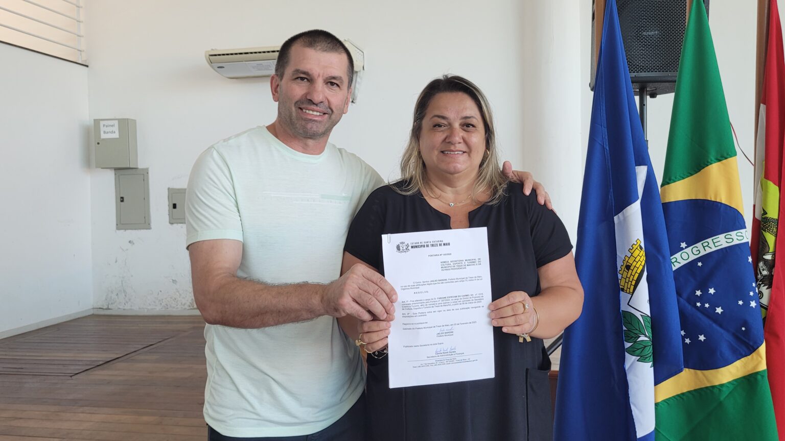 A cidade de Treze de Maio oficializou a criação da Secretaria de Cultura, Esporte e Turismo em uma solenidade realizada no Centro de Convivência Pedrinho Silvestro Marcon, na manhã desta quinta-feira (06), com a presença de lideranças locais, secretários, vereadores e representantes da Assemtur e do Comtur. A lei nº 1640/2025 foi sancionada pelo prefeito Neném Bardini, nomeando Fabiane Estevam como secretária e Leandro Serafim Gislon como diretor de Esportes.