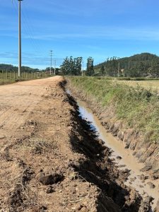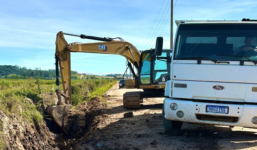 A Prefeitura de Sangão, por meio da Intendência Distrital, está realizando a limpeza das calhas da Avenida Presidente Juscelino Kubitschek, no bairro Morro Grande. A ação tem como objetivo garantir o bom escoamento da água da chuva, prevenir alagamentos e manter a segurança de motoristas que transitam pela via.