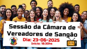 Senhores cidadãos de Sangão, sejam bem-vindos! Estamos dando início, neste momento, à transmissão ao vivo da sessão ordinária da Câmara de Vereadores, diretamente da Sala de Sessões, via TV Câmara. Acompanhe conosco: